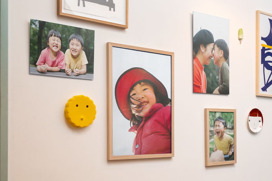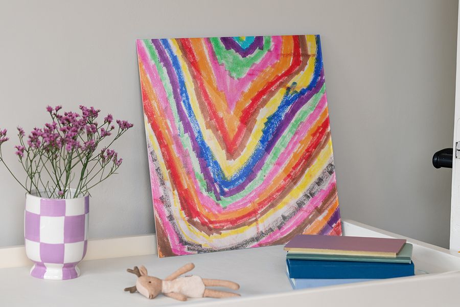 Onze afdrukken op plexiglas zijn ideaal voor deze vorm van personalisatie. De glanzende afwerking zorgt voor opvallende kleuren en de frameloze stijl geeft zelfs geliefde tekeningen een strakke uitstraling. Plotseling past de regenboog die je kleintje met viltstift heeft getekend net zo goed aan de muur als je mooiste foto (wij pinken vast een traantje weg).