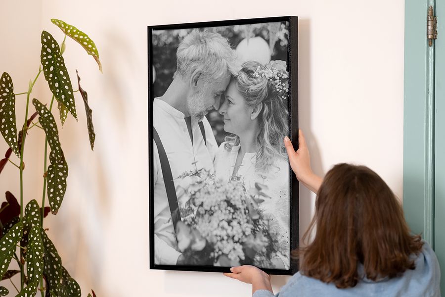 Vooral foto’s met veel contrast zien er geweldig uit in zwart-wit. Denk aan een trouwportret, de skyline van een stad net na zonsondergang of zelfs een close-up van een bloem waarop je elk blaadje kunt zien. In zwart-wit en geprint op trendy canvas wanddecoratie springen alle details eruit, terwijl de textuur van het canvas een zachtere afwerking geeft die voorkomt dat het geheel te hard overkomt.