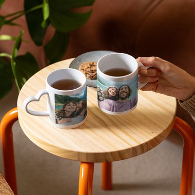 Zoek de oudste foto van jullie samen op en zet 'm op een mok met hart. Dat is pas een echt uniek cadeau voor een jubileum. Voeg een caption toe met ‘kijk eens hoe ver we zijn gekomen’ (of ‘kijk eens naar dat kapsel...’) voor een cadeau dat een knipoog naar de toekomst is en een terugblik op het verleden.