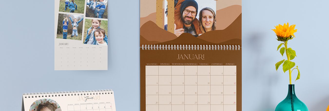 Maak binnen een kwartier jouw kalender. Kies uit één van de 100+ prachtige ontwerpen en voeg je eigen data en verjaardagen toe.